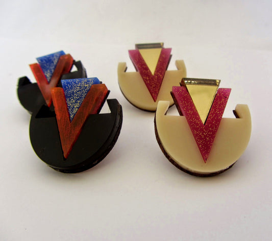 80s Art Deco earrings - Night & Day